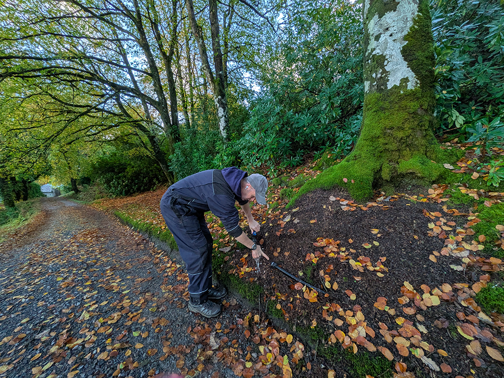 Meanwhile King Niall and MVP Kenny R had isolated each property individually and eventually located the offending leak. A pipe following the burn down to South Lodge, had, over time, rubbed against the stone bridge and worn through. The burn provided the perfect cover for 30,000 litres of water to bypass our properties and flow directly into the sea.